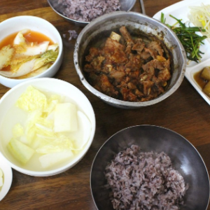 청국장이 서비스로 나오는 서문시장 유명 밥집이예요. 4지구 근방 골목에 자리하고 있다고 해 찾아가 봤어요. 가성비 좋게 고기랑 반찬이랑 한끼하기 좋습니다. 저렴한 가격으로 동인동 스타일의 마늘양념 갈비찜을 먹을 수 있는 곳입니다. 생각보다 매장이 넓고 깨끗해 좋았어요. 갈비찜 양이랑 소스 많아서 양껏 먹을 수 있어요. 쌈배추 많이 주셔서 2장씩 겹쳐서 싸먹었어요. 갈비찜에 콩나물 반찬이랑 마늘 곁들여서 먹으면 최고입니다. 매운거 먹으면 속이 뒤집어 지는 편인데 이건 먹어도 속 안아팠어요. 쌈도 많이 주고 청국장도 적당하고 먹고 나면 항상 건강해지는 기분납니다. |