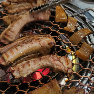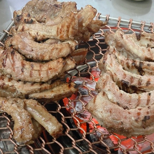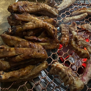 등갈비 주문하면 사모님이 직접 발골해주셔서 먹기 편합니다. 살과 뼈를 어느정도 분리시켜둔 후 조금 더 익혀서 먹었어요. 골고루 익어야 하니까 기다려야 해요. 익은 건 소스그릇에 넣어주시는데 소스를 잘 섞어서 고추 하나 올려서 먹으면 정말 맛있어요. 위생장갑과 면장갑 끼고 뼈를 발라 먹으니 편하네요. 입가심으로 시킨 껍데기는 사장님이 불판에 올려주시는데 뒤집을 타이밍이 되면 말씀해주셨어요. 잘 구워진 껍데기를 콩가루 묻히고 소스에도 찍어먹으면 진짜 맛이 좋습니다. |