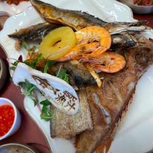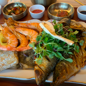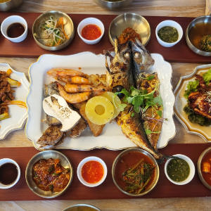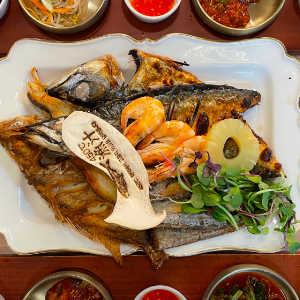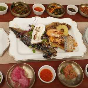 생선 종류도 많고 여러가지 메인들이 맘에 드네요. 제주산 참고등어와 신선한 생선으로 500도씨에서 어즙을 구워낸다고 하니 좋습니다. 매장 안이 참 밝고 샹들리에가 품격을 높여주는 것 같습니다. 화덕모듬생선구이 양이 상당합니다. 8가지 이상의 반찬과 소스, 간장게장, 양념게장까지 구성이 좋습니다. 너무 달지 않은 간의 김치찜으로 푹 익어 다들 넘 맛있게 먹었습니다. 제육볶음도 익숙한 맛임에도 뭔가 설명하기 힘든 남다른 면이 있었습니다. |