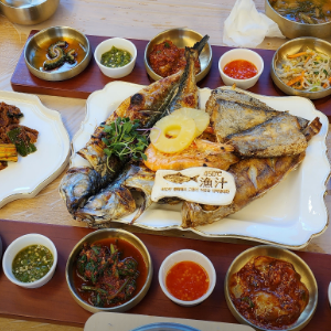 푸짐한 생선구이, 맛도 좋고 예쁜 식기류도 깔끔하고 분위기도 좋았어요. 화덕모듬생선밥상 단품으로 기본 상차림이 깔끔합니다 거창에서 생선구이 찾기 어려운데 화덕구이로 생선구이를 먹었답니다. 음식이 깔끔하고 맛있어요. 젓갈종류도 맛있어요. 단체모임하기 좋을것 같아요. 한적한 시골에 너무 멋진 인테리어를 한 도감어가이네요. 메인음식 푸짐했고 맛있었어요. 생선살이 쫀득하고 탱탱하니 맛있고 돌솥밥에 누룽지 따뜻하게 조화롭습니다. |