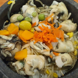 굴구이보다 굴찜이 더 좋은것 같아요. 굴, 가리비, 피조개, 새우 등이 들어 있어 푸짐합니다. 초장을 안찍어도 짭조름하면서도 달짝한맛이 보들보들한 가리비살에 쏙배어서 넘나 맛있어요. 먹고 또 먹고 먹어도 계속 줄지를 않네요. 생긴것도 예쁘게 생긴 석화는 초장 콕 찍어서 냠냠하면 입안 가득 바다향이 쫘악 퍼져요. 배불러도 밥은 먹어야겠기에 굴칼국수랑 영양굴밥 주문해서 먹었어요. |