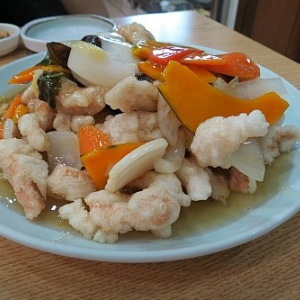 탕수육은 고기가 깨끗하고 튀김옷은 찹쌀로 만들어서 그런지 쫄깃한 식감이 있어요. 짜장면 곱배기로 먹었는데 양이 많아요. 달짝지근한 짜장면은 맛이 좋습니다. 소스는 시큼한 맛보다는 달큼한 맛이 많이 느껴지고, 당근, 양파, 배추 등이 푸짐하게 들어 있습니다. 짜장면은 계란 반쪽, 오이채,두툼한 감자가 보입니다. 고기도 두툼하고 투박한 느낌입니다. 짜장면에 고춧가루를 넣어서 비볐더니 매콤함을 느끼며 먹을 수 있었어요. |